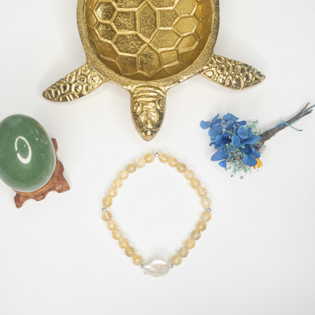 Harness the power of the sun with our Citrine and Freshwater Pearl Bracelet.