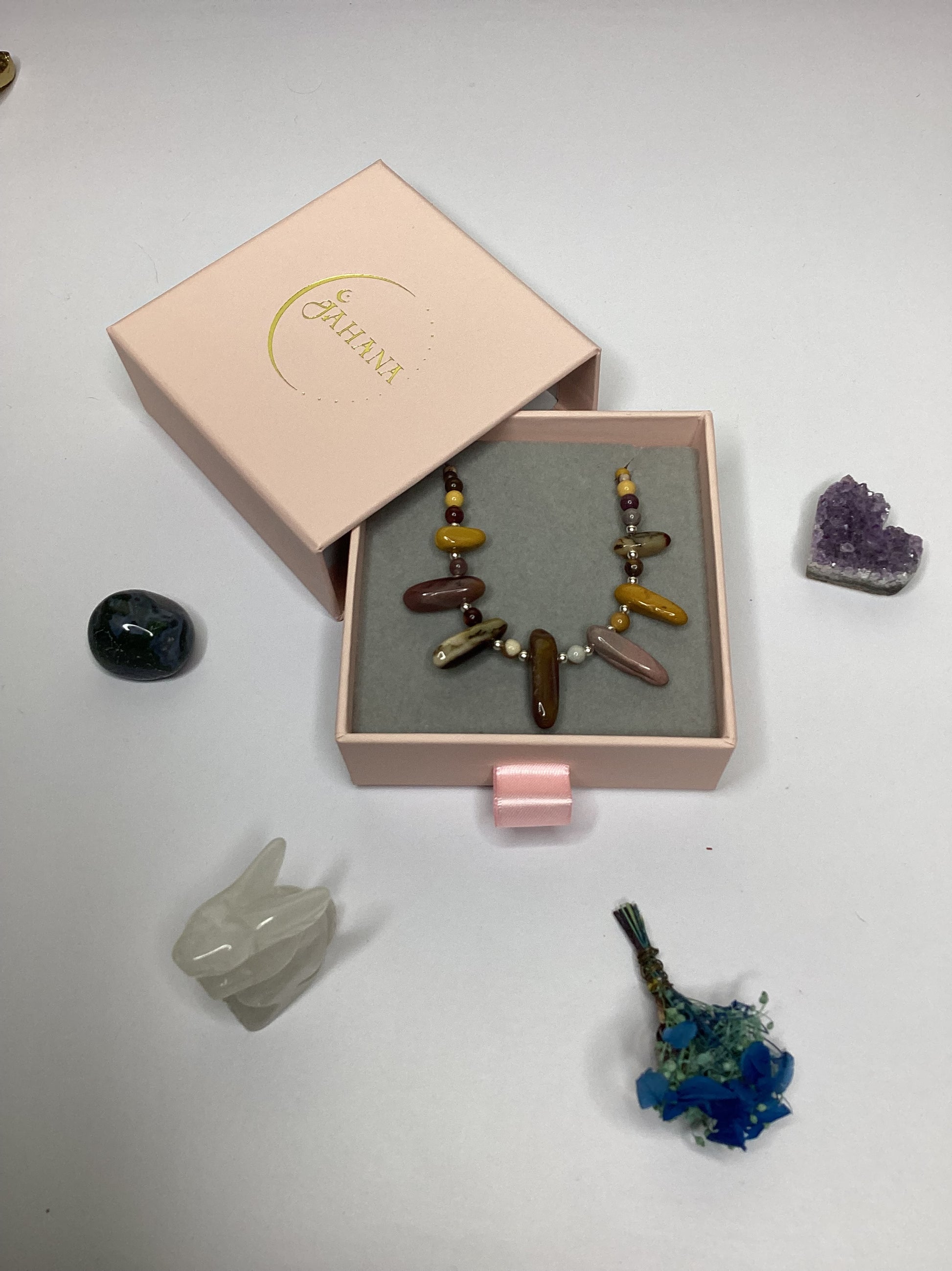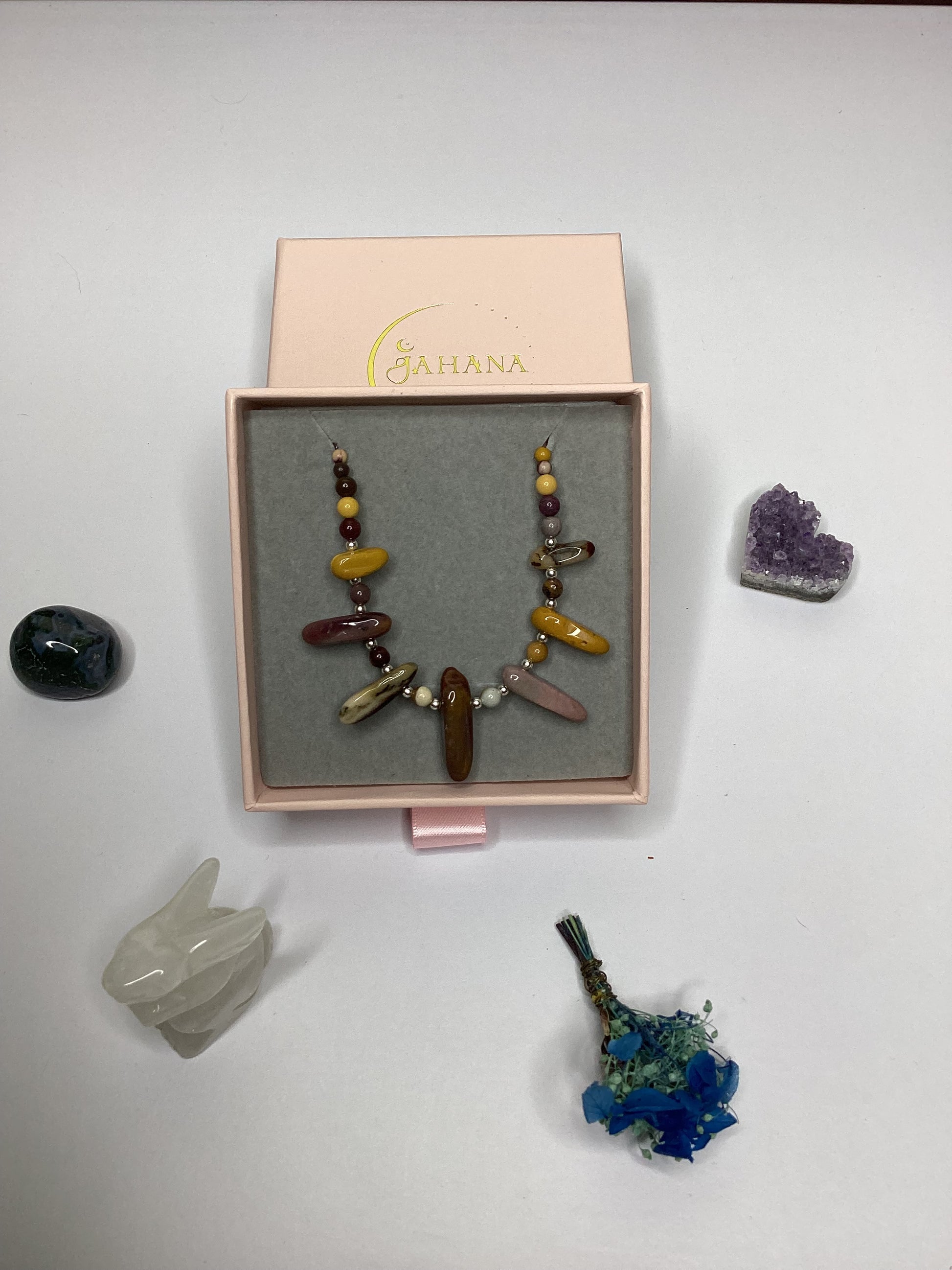 Experience inner peace and confidence with our Mookaite Chip Sterling Silver Necklace.