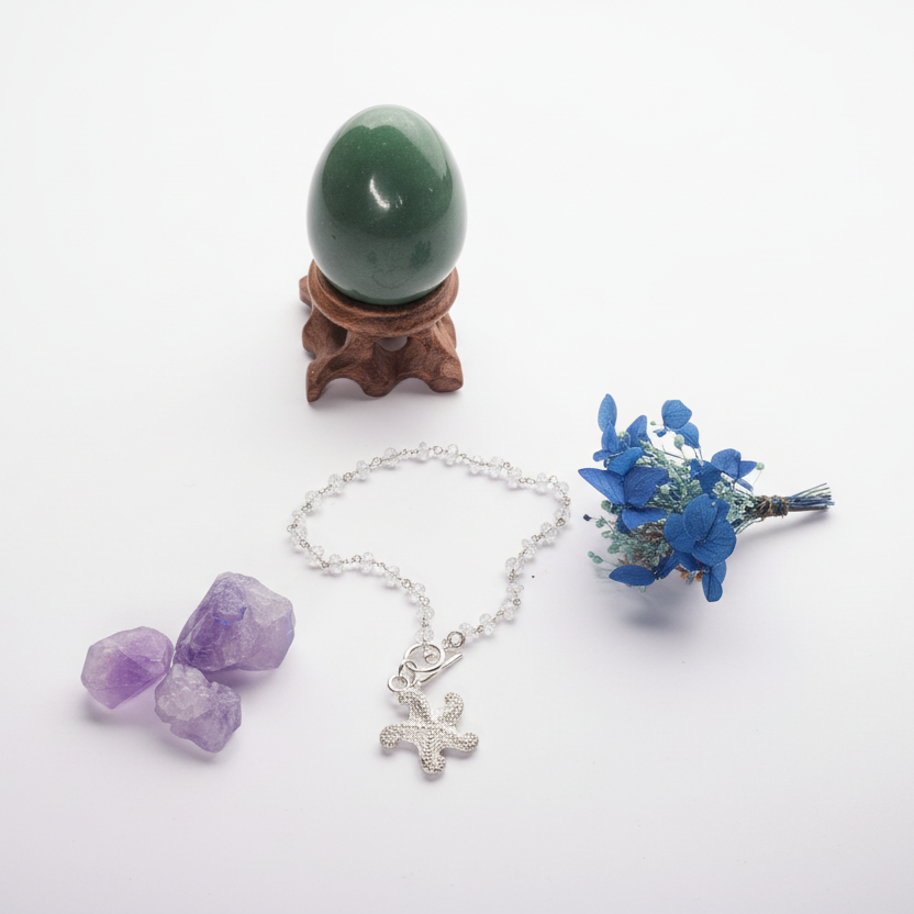 Moonstone is known to enhance emotional balance, while the starfish symbolizes renewal.
